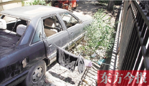 在采訪中得知,國棉三廠綠化街也有一輛“僵尸車”。東方今報(bào)記者在現(xiàn)場看到,這是一輛黑色馬自達(dá)轎車,經(jīng)過長時(shí)間的風(fēng)吹雨打,油箱蓋、雨刮器、車頭銹跡斑斑,車頂凹陷,引擎蓋上放著一塊磚,同樣沒有車牌號。