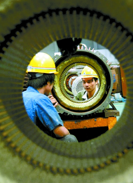 “轉(zhuǎn)方式、正風(fēng)氣、提效能”活動(dòng)讓南陽的經(jīng)濟(jì)發(fā)展環(huán)境日益優(yōu)化,使許多大項(xiàng)目、大企業(yè)駛?cè)氚l(fā)展的快車道。圖為南陽防爆集團(tuán)股份有限公司技術(shù)人員正在生產(chǎn)訂單出口防爆電機(jī)。