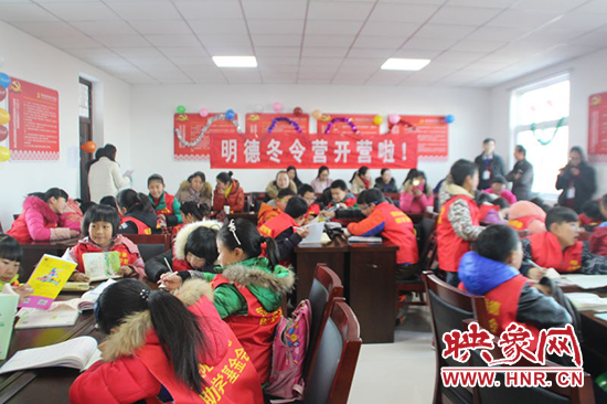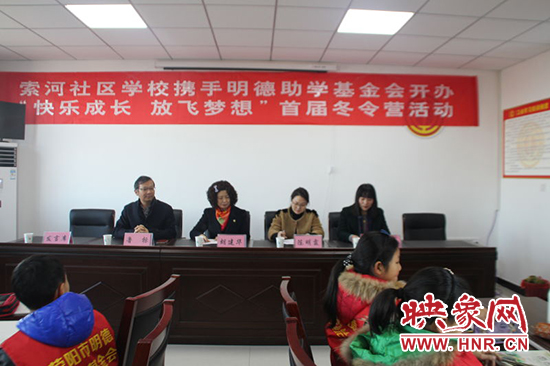 映象網(wǎng)訊(記者 王文凱 通訊員 尚瑩 蔣艷艷)1月20日上午,以“放飛夢(mèng)想 快樂成長”為主題的滎陽市索河中心校冬令營活動(dòng),在索河辦廣場(chǎng)社區(qū)舉行開營儀式。滎陽市僑聯(lián)主席胡建華、滎陽市教體局職教科科長魯標(biāo)、辦事處副主任陳明霞、索河中心校校長馬叢敏、西街小學(xué)30名留守兒童、家長代表以及13位志愿者老師參加。