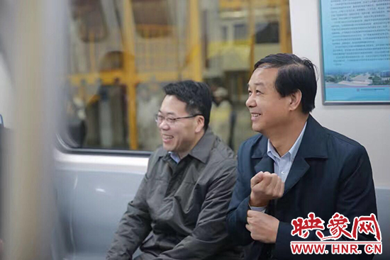 “滎陽(yáng)造”首列地鐵列車(chē)正式下線(xiàn)后,滎陽(yáng)市委書(shū)記宋書(shū)杰(右一)坐上列車(chē)參觀。