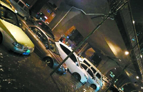 “前兩年這個地方雖然偶爾有積水,但不會這么嚴重?!绷硪幻囍髡f,當天的雨并不算很大,所以根本沒想到車會被淹。