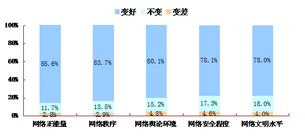 相應地,表示網絡環(huán)境不變或變差的網民比例很低。其中,表示網絡環(huán)境不變的網民比例普遍在10%-20%之間,表示網絡環(huán)境變差的網民比例則均低于5%。