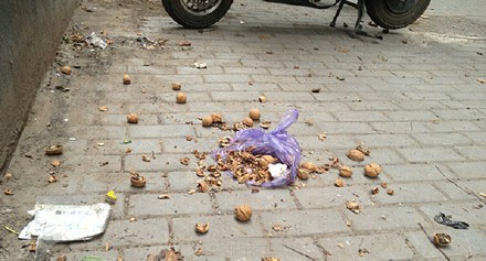 8月26日,鄭州互助路某家屬院忽然天降一包核桃,險(xiǎn)些砸中買菜回來的王女士。接到王女士求助后,巡防隊(duì)員急忙上樓查看高空拋核桃的居民,沒有一家開門說明情況。據(jù)了解,該小區(qū)之前也有居民反映高空拋物現(xiàn)象。