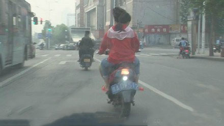 15、鄭州“最?!彪妱?dòng)車 掛汽車牌照還逆行