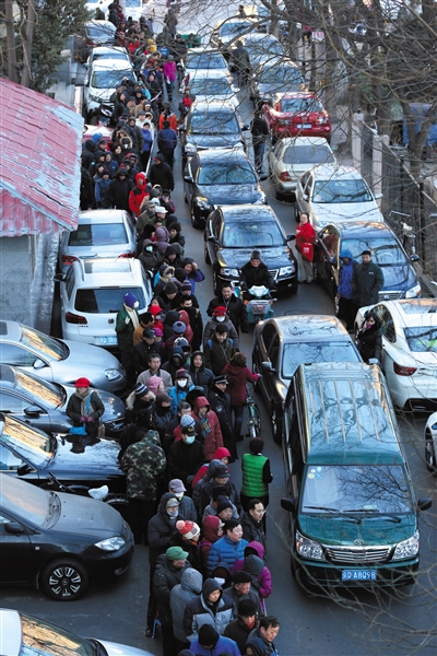 昨日早8時許,數(shù)百人等候在朝陽區(qū)水碓子郵局門口,平日寂靜的街道“人氣”旺盛。一位推著自行車經(jīng)過的女士好奇地詢問,“今天怎么了?這么多人!”