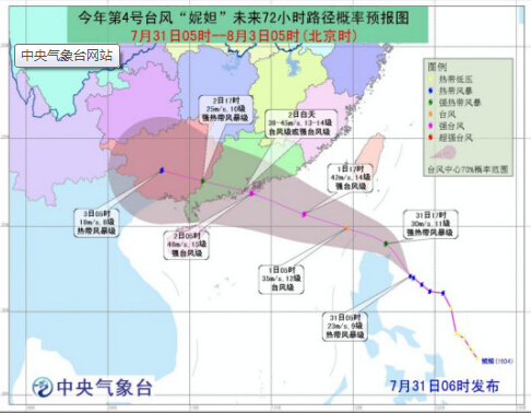 根據(jù)中國(guó)天氣網(wǎng)的消息,今年第4號(hào)臺(tái)風(fēng)“妮妲”,即將給華南等地帶來強(qiáng)風(fēng)雨,同時(shí)也會(huì)終結(jié)南方這次高溫持久戰(zhàn)。從8月1日開始,長(zhǎng)江中下游地區(qū)、江南、華南地區(qū)的高溫天氣將快速消退,預(yù)計(jì)到8月3日這一帶的高溫天氣將基本清除,最高氣溫普遍回落至30℃出頭。