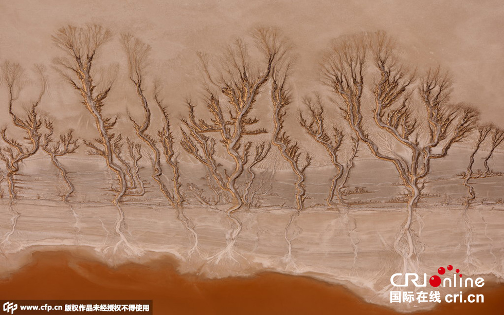 2015年6月5日消息,美國(guó)加州莫哈韋沙漠,這些照片看起來(lái)像是拍了森林中的一排樹(shù),但事實(shí)上它們是干涸湖底的紋路。這種紋路足足綿延3英里。飛行教員Jassen Todorov在3000英尺的空中拍下了這組照片。圖片來(lái)源:CFP