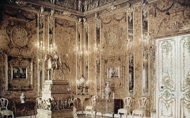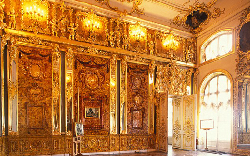 琥珀屋被安置在圣彼得堡附近的凱瑟琳宮中,1941年納粹攻入這里以后,將這個(gè)華麗的房間拆掉,運(yùn)回德國(guó)納粹城堡中。(網(wǎng)頁(yè)截圖)