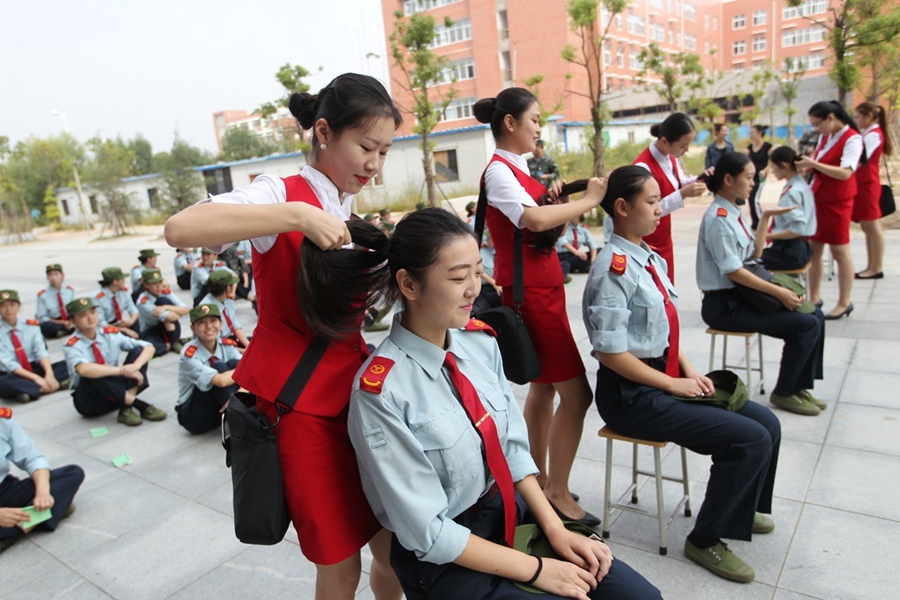 2015年9月17日,鄭州航院的“準(zhǔn)空姐”們正在軍訓(xùn)。