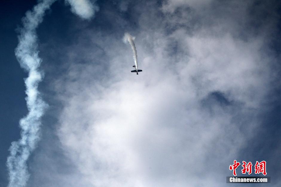 9月24日,河南鄭州上街機(jī)場,參加2015鄭州航展的特技飛行員們,穿云破霧在加緊練習(xí)表演動作,沖刺9月25日開幕的鄭州航展。中新社記者 王中舉 攝