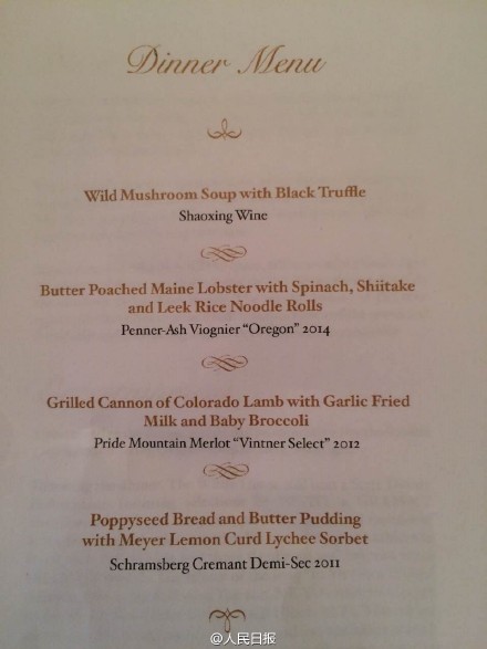 【白宮國宴菜單提前曝光】黑松露野生菌湯+黃油煮龍蝦菠菜+香菇韭菜米線卷+科羅拉多烤羊肉配奶煎大蒜+紹興黃酒……這樣的搭配怎么樣?(溫憲、張朋輝、李博雅)