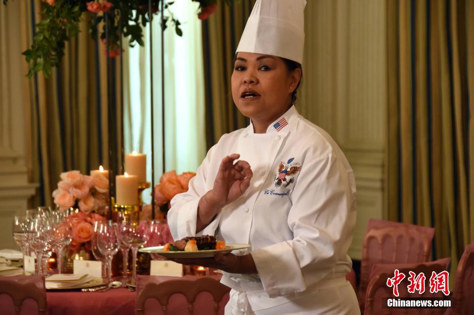 當?shù)貢r間9月24日,美國白宮第一夫人辦公室發(fā)布了白宮為中國國家主席習近平和夫人彭麗媛舉行的國宴的菜單,并介紹了餐桌布置等情況。據(jù)這份菜單,紹興黃酒和南瓜月餅將亮相國宴。此外,白宮還邀請了華裔名廚參與此次國宴的準備。中新社記者 刁海洋攝