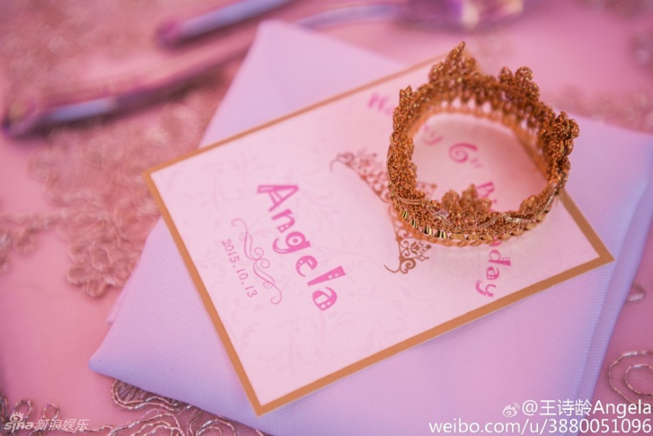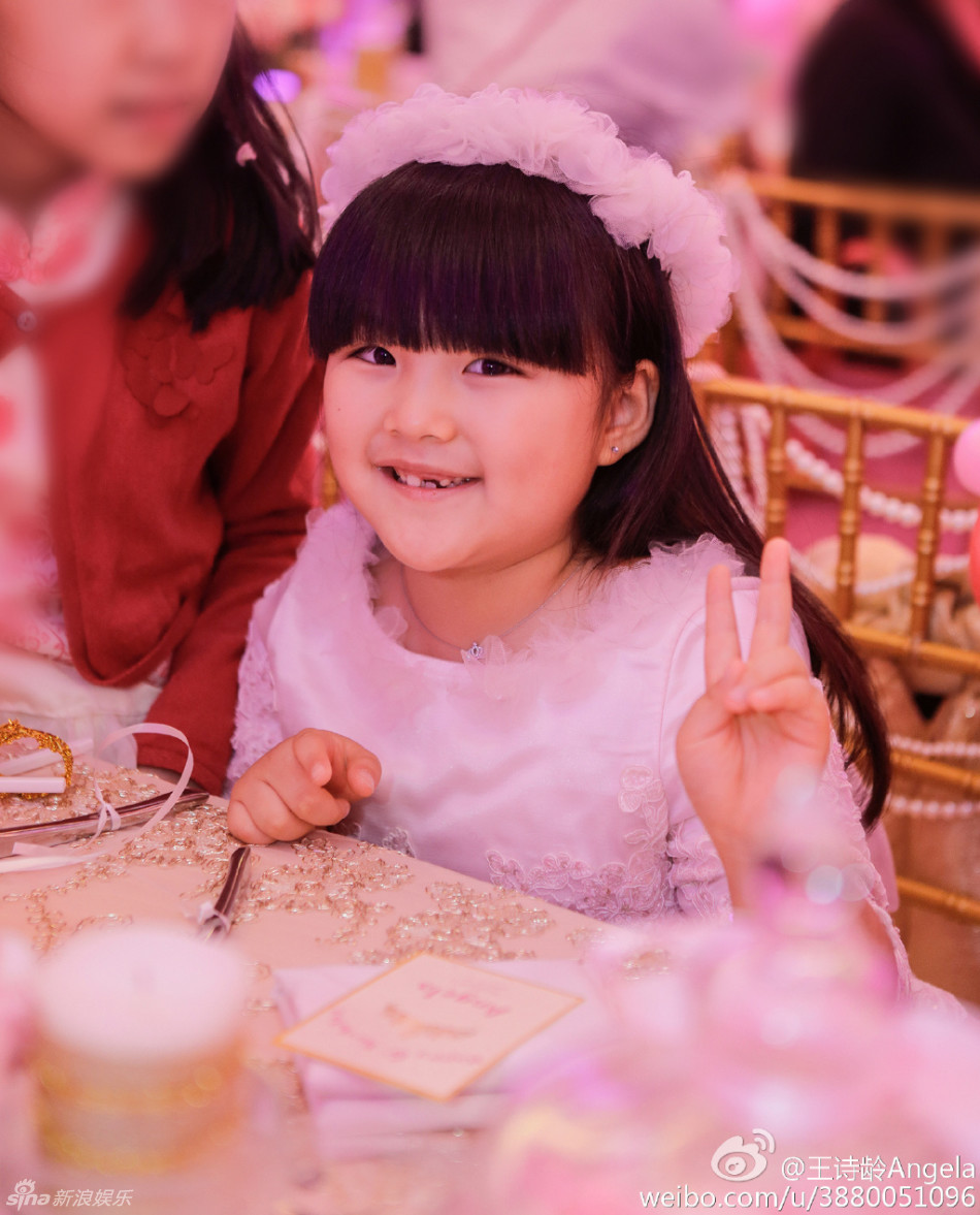 新浪娛樂訊 10月13日是Angela王詩齡6歲的生日,李湘王岳倫特別為她辦生日派對。宴會現(xiàn)場一片粉色十分夢幻,王詩齡頭頂花環(huán)似小公主。