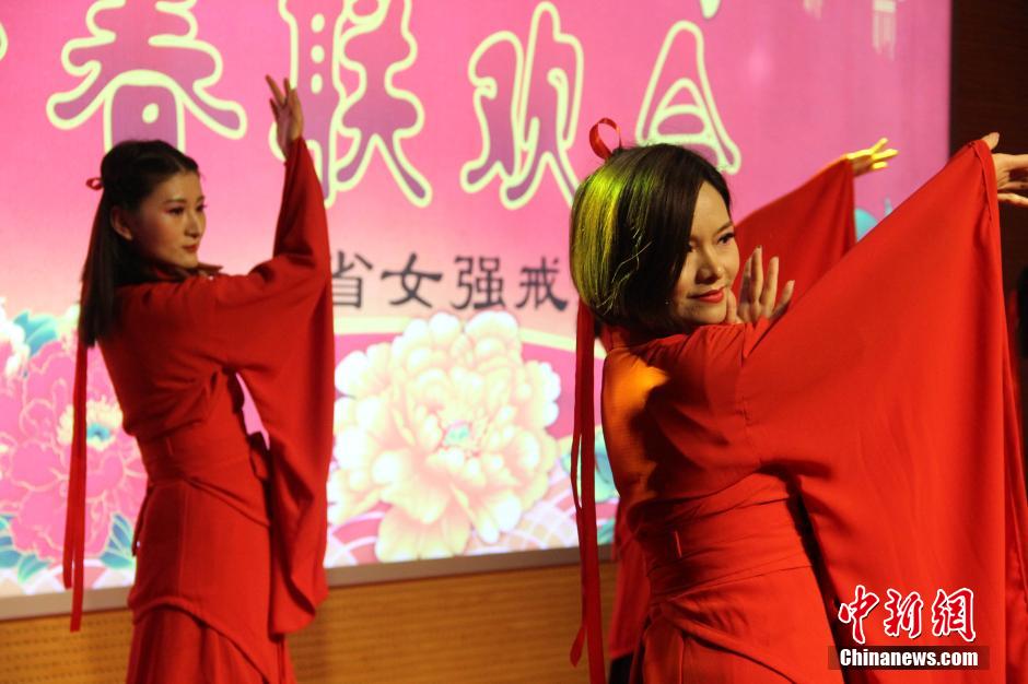 22日,適逢元宵佳節(jié),一場(chǎng)由民警和戒毒學(xué)員共同演繹的聯(lián)歡會(huì)在陜西省女強(qiáng)制隔離戒毒所舉行,通過歌舞、相聲、二人轉(zhuǎn)、小品等表演形式,鼓勵(lì)戒毒人員在新的一年,繼續(xù)增強(qiáng)戒毒意愿和決心,早日戒除毒癮回歸社會(huì)。圖為民警表演歌伴舞。 張一辰 攝
