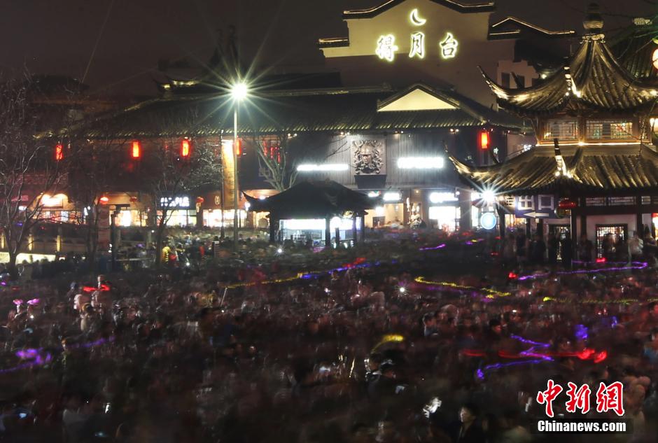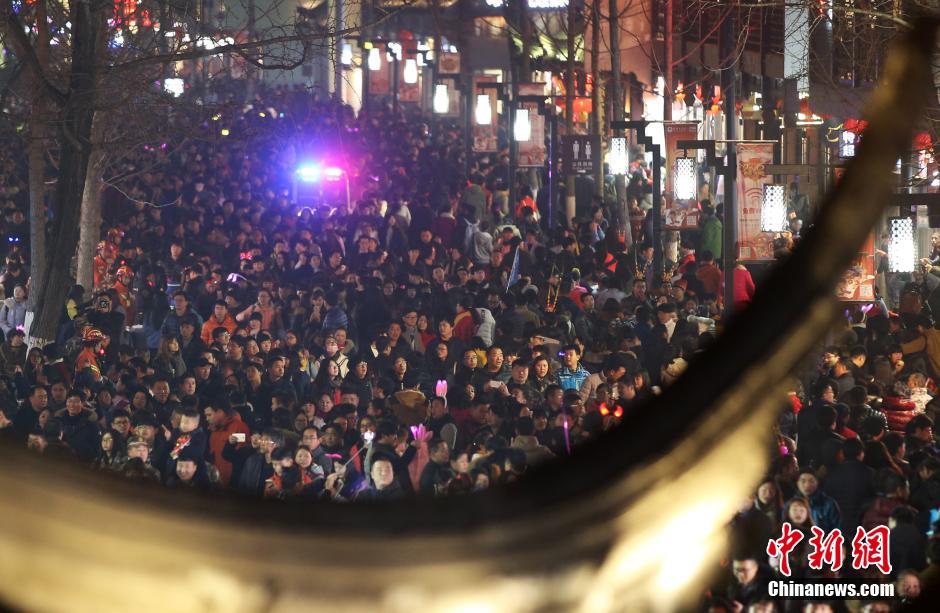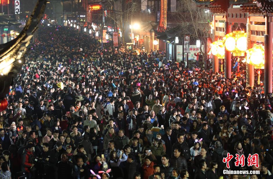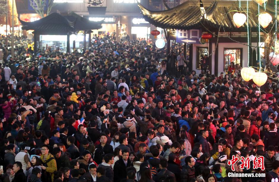 2月22日晚,南京夫子廟廣場(chǎng)上人山人海。當(dāng)日是元宵節(jié),數(shù)十萬(wàn)市民和游客涌進(jìn)南京夫子廟景區(qū)內(nèi)欣賞秦淮燈會(huì),瞬間開(kāi)啟“人從眾”模式。秦淮燈會(huì)又稱(chēng)“金陵燈會(huì)”,是流傳于南京地區(qū)的特色民俗文化活動(dòng),主要在每年的春節(jié)至元宵節(jié)期間舉行。 中新社記者 泱波 攝