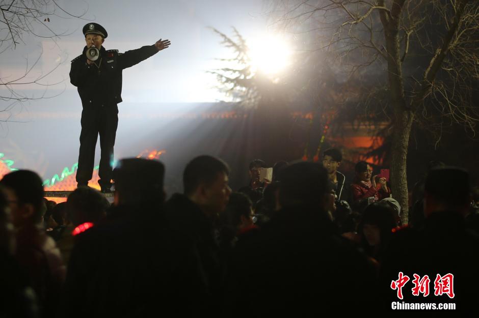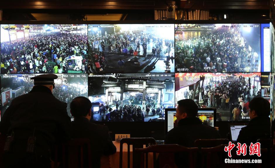 2月22日晚,南京警方在監(jiān)控涌進(jìn)夫子廟廣場(chǎng)上的人流。 中新社記者 泱波 攝