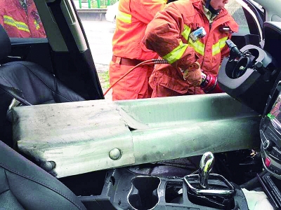 接報警,附近巡邏民警、120急救人員、消防官兵紛紛趕到現(xiàn)場救人。消防員緊急破拆將王某從車內(nèi)救出,抬上120急救車,送附近醫(yī)院搶救。據(jù)急救醫(yī)院表示,如果鋼板再插入5厘米,王某很可能因失血過多而出現(xiàn)生命危險。目前看應(yīng)該只是骨折,算是萬幸的。