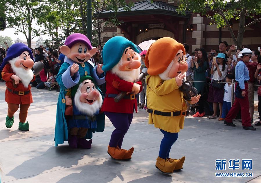 “小矮人”在上海迪士尼樂園的花車巡游上亮相(5月11日攝)。 5月11日是上海迪士尼樂園的又一個(gè)內(nèi)部測(cè)試日。在樂園運(yùn)營(yíng)管理方的安排下,上萬名參加測(cè)試的樂園建設(shè)者及其家屬參觀了園內(nèi)部分景點(diǎn)和游樂設(shè)施。據(jù)悉,上海迪士尼樂園將于6月16日開幕。新華社記者 任瓏 攝