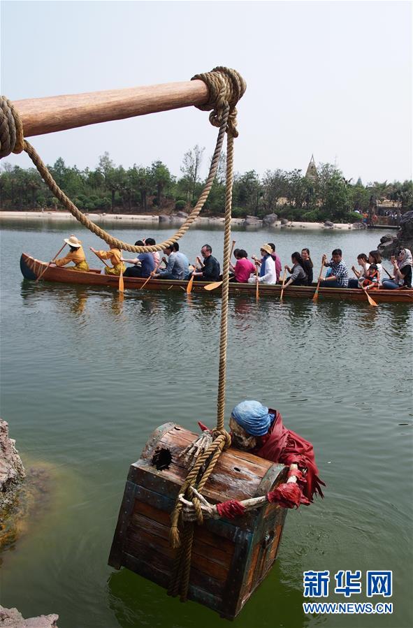 在上海迪士尼樂園里,參觀者劃著“探險(xiǎn)家獨(dú)木舟”駛?cè)搿皩毑貫场保?月11日攝)。 5月11日是上海迪士尼樂園的又一個(gè)內(nèi)部測(cè)試日。在樂園運(yùn)營(yíng)管理方的安排下,上萬名參加測(cè)試的樂園建設(shè)者及其家屬參觀了園內(nèi)部分景點(diǎn)和游樂設(shè)施。據(jù)悉,上海迪士尼樂園將于6月16日開幕。新華社記者 任瓏 攝