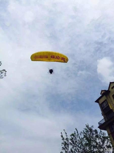 @人民網(wǎng)【悲催!男子欲滑翔求婚不想掛樹上了】21日上午,湖北宜昌一男子乘坐滑翔傘在空中向女朋友求婚。但在低空欲降落時,因一陣強風被刮到樹上。