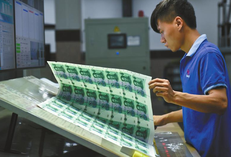 印鈔是一個精密的生產(chǎn)過程。據(jù)了解,印刷車間內(nèi)的氣溫必須保持恒定的工藝溫度范圍內(nèi),因為一旦溫度過高或過低,紙張會發(fā)生形變,使印刷圖像的位置偏移。在人民幣生產(chǎn)的全過程中,可以發(fā)現(xiàn)在每個機臺、每個工序都應(yīng)用了在線、離線質(zhì)量檢測設(shè)備,全過程對產(chǎn)品質(zhì)量進(jìn)行監(jiān)控。凹印工房里,工人小李拿著放大鏡,將凹印機里吐出的產(chǎn)品與手里的樣張認(rèn)真比對。他要檢查的內(nèi)容很多,是否有缺陷、瑕疵等等。小李告訴記者,“為確保萬無一失,還會堅持人工抽查?!?/p>