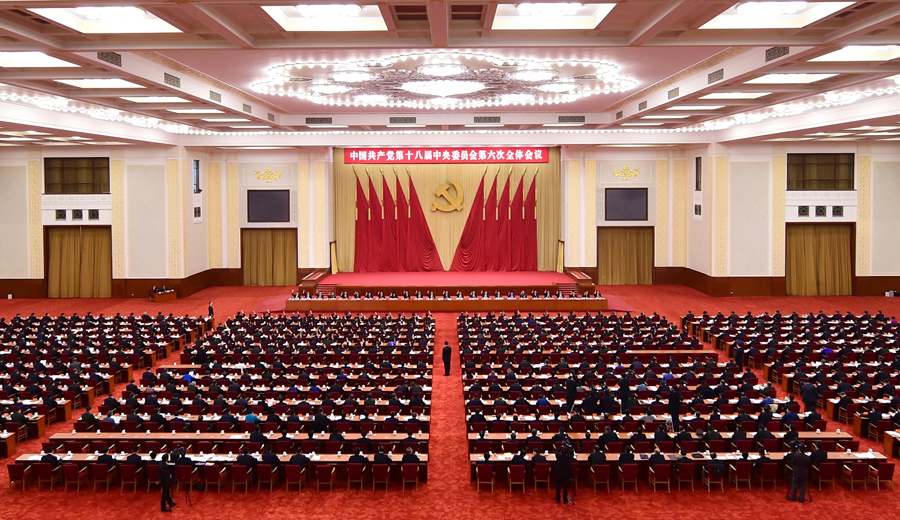 中國共產(chǎn)黨第十八屆中央委員會(huì)第六次全體會(huì)議,于2016年10月24日至27日在北京舉行。中央政治局主持會(huì)議。 新華社記者 張鐸 攝