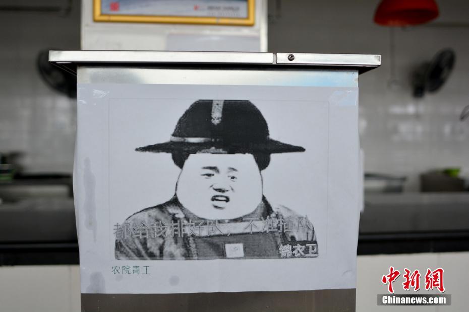 近日,四川農(nóng)業(yè)大學(xué)食堂的“魔性”表情包告示牌在網(wǎng)絡(luò)走紅。告示牌上除了夸張的“魔性”圖案,還配有“吃完盤中餐,不做剩男剩女”、“敢在食堂撒野”、“默默吃著飯”等文字。四川農(nóng)業(yè)大學(xué)工作人員介紹,這組魔性表情包告示牌由該校農(nóng)學(xué)院同學(xué)們自發(fā)創(chuàng)作張貼,目的是為了讓同學(xué)們不要浪費(fèi)糧食,注意排隊(duì)。 四川農(nóng)業(yè)大學(xué)供