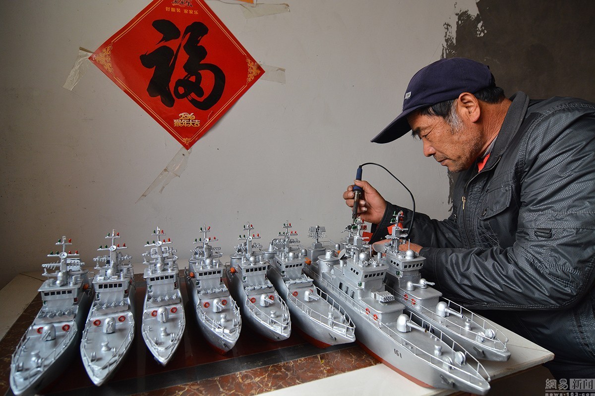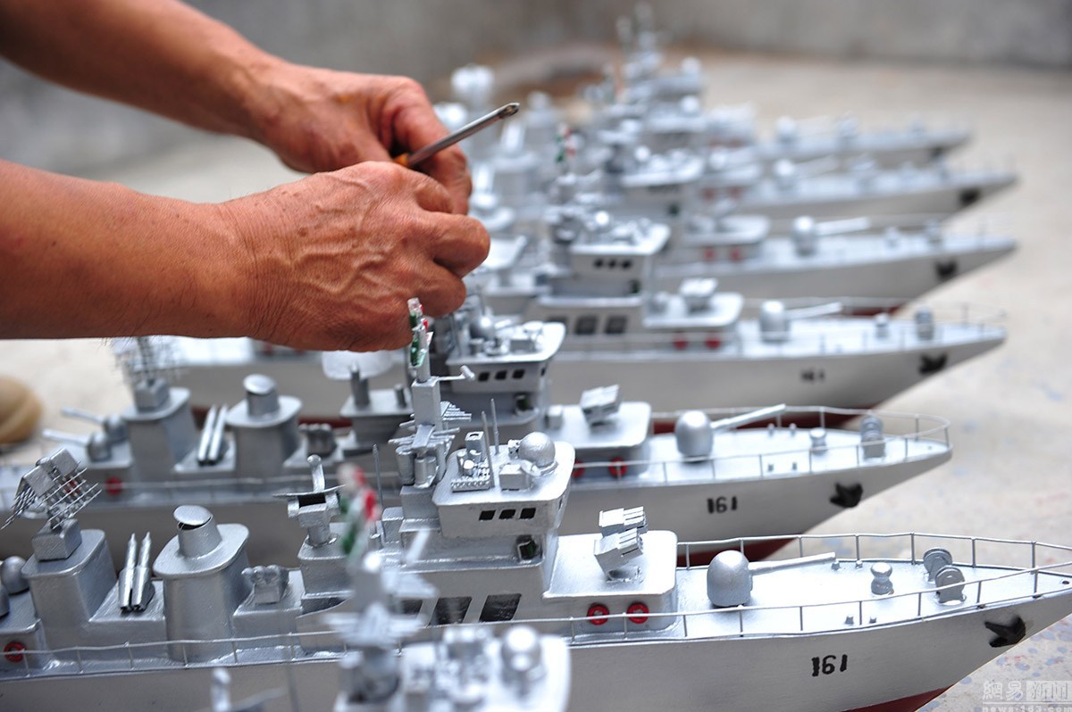 1月9日,今年59歲的郭長海,是山東省日照市山海天旅游度假區(qū)肖家村一位普通的漁民。從2005年開始,他自己純手工制作“軍艦”模型,可以說是到了癡迷的程度。十幾年來,他先后花費近6萬多元人民幣,造出了7艘可實現(xiàn)模擬槍炮發(fā)射的“軍艦”模型,十幾艘小軍艦?zāi)P汀啄陙?,因為他的癡迷,郭長海也成為網(wǎng)絡(luò)、報紙、電視,以及自媒體等關(guān)注報道的對象,成為“網(wǎng)紅”。