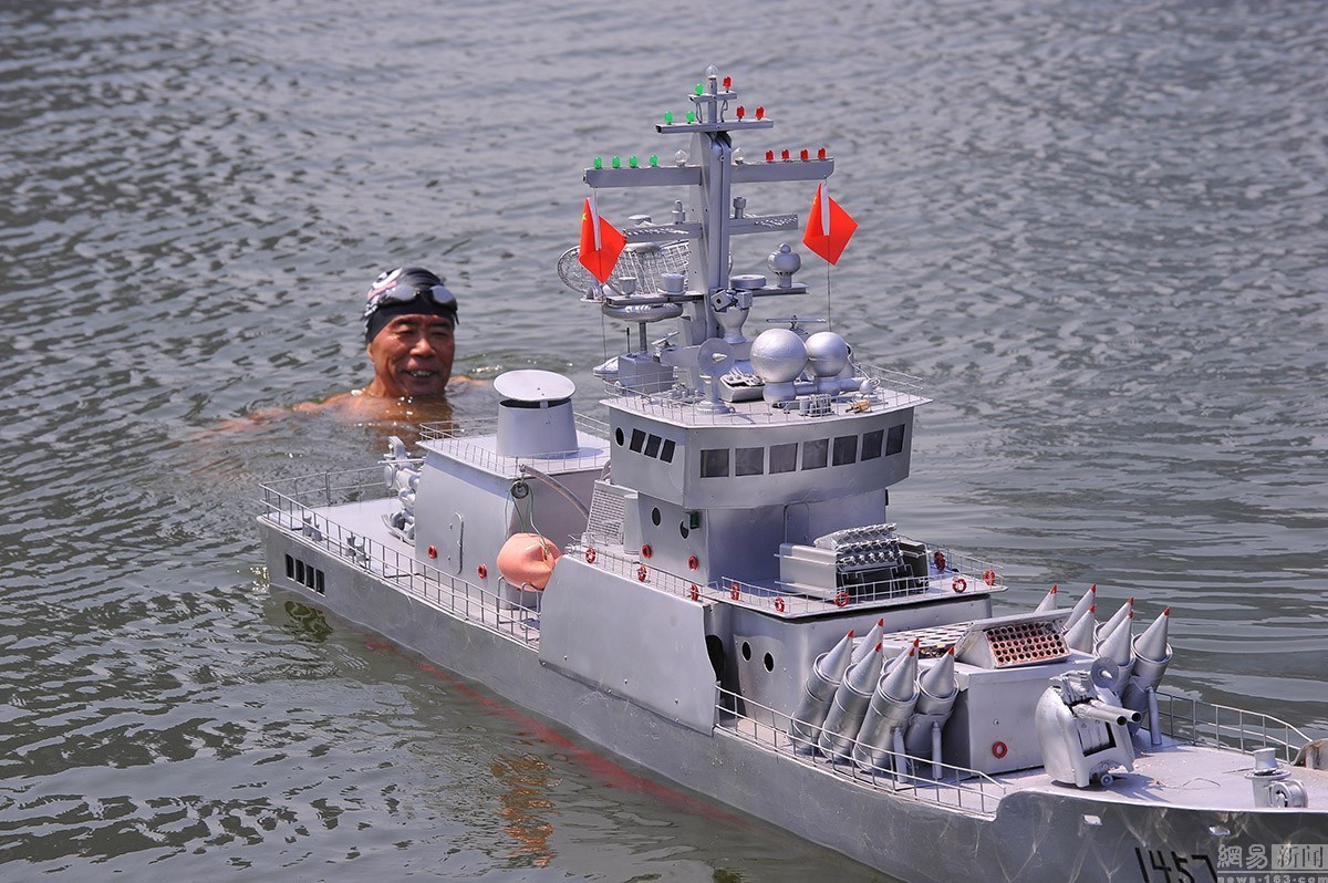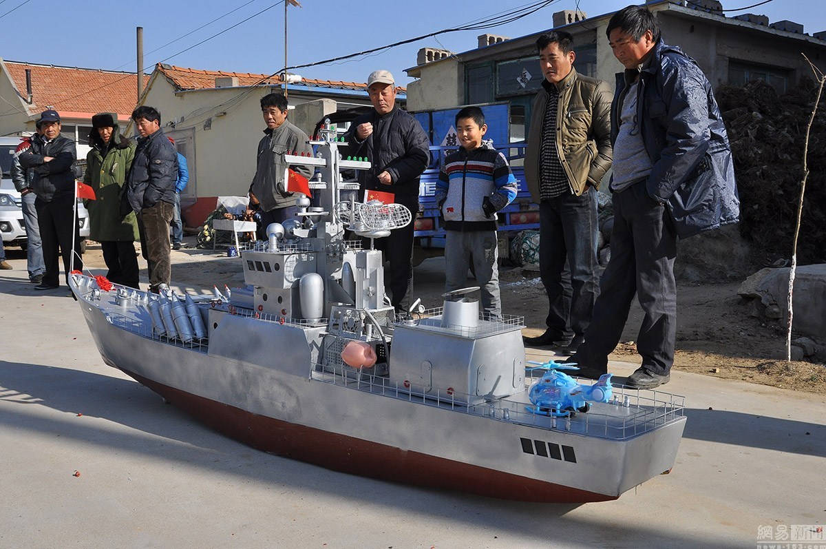 十幾年來,他先后成功的造出了“導(dǎo)彈驅(qū)逐艦”2艘,“巡洋艦”4艘,“導(dǎo)彈護衛(wèi)艦”1艘。2014年12月13日,郭長海將半年時間打造的新作“導(dǎo)彈護衛(wèi)艦”拉到村里的大街上向村民展示,這艏長3.07米,高1.2米,寬約0.8米的“導(dǎo)彈護衛(wèi)艦”在他的遙控指揮下,成功實現(xiàn)了陸地上的前進、后退、左右拐彎,并可模擬槍炮發(fā)射火藥的效果。為了驗證水上功夫,2015年8月13日,郭長海在日照奧林匹克水上公園龍舟碼頭,為“導(dǎo)彈護衛(wèi)艦”進行試航,經(jīng)過半個多小時的調(diào)試,最終試航成功。連續(xù)兩年在眾人面前的試驗,均獲得成功,這大大增強了他的信心。