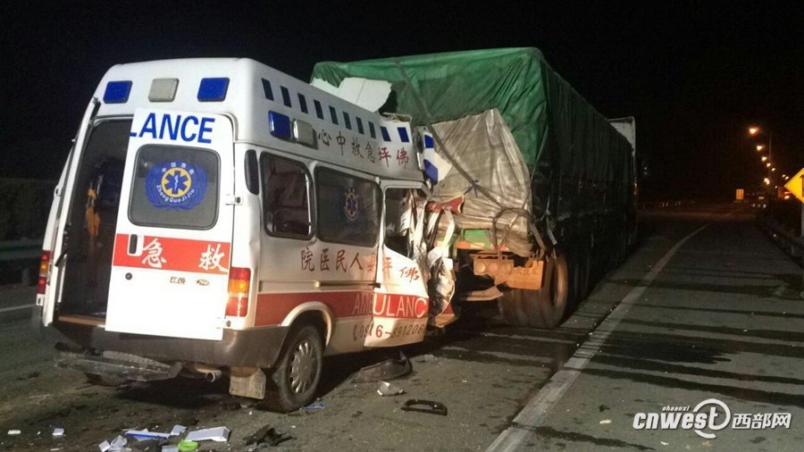 2017年3月1日凌晨3點30分左右,陜西省漢中市佛坪一輛救護車送病人到漢中后,返回途中在西漢高速西安方向龍亭危險品檢查站發(fā)生追尾事故。