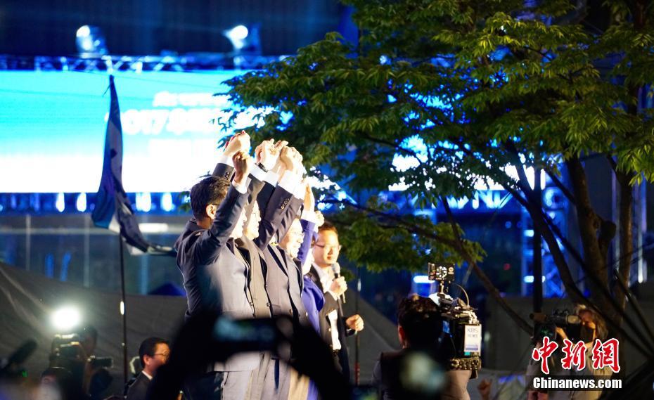 當(dāng)?shù)貢r(shí)間5月9日深夜,韓國(guó)第19屆總統(tǒng)選舉共同民主黨候選人文在寅及其競(jìng)選團(tuán)隊(duì)現(xiàn)身首爾光化門(mén)廣場(chǎng),發(fā)表“勝選演說(shuō)”,與支持民眾握手慶祝。據(jù)出口民調(diào)顯示,文在寅在當(dāng)日進(jìn)行的大選投票中以41.4%的支持率絕對(duì)優(yōu)勢(shì)勝選。在選舉管理委員會(huì)公布的大部分開(kāi)票結(jié)果中,文在寅得票率也遙遙領(lǐng)先,提前鎖定勝局。