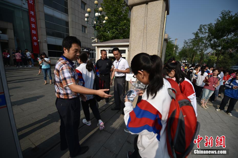 6月7日,2017年高考大幕正式拉開(kāi),全國(guó)將有940萬(wàn)考生參加考試。今年可謂是高考?xì)v史上的特殊年份,一方面,今年是高考恢復(fù)40周年,另一方面,今年也被稱為“新高考元年”,高考綜合改革試點(diǎn)地區(qū)的考生將迎來(lái)首次“新高考”。圖為北京市171中學(xué)考點(diǎn)的考生陸續(xù)進(jìn)入考場(chǎng)。中新網(wǎng)記者 金碩 攝