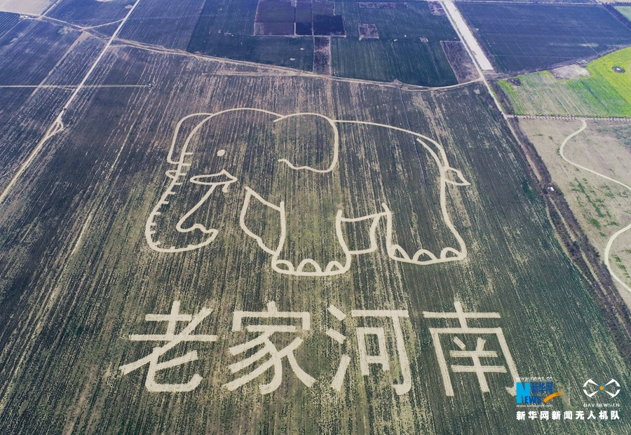 近日,《老家河南》創(chuàng)意圖案亮相河南省溫縣境內(nèi)的黃河濕地。據(jù)介紹,這幅圖案占地一公頃,主要通過圖案設(shè)計、定點測繪、錯季間作、田間管理等環(huán)節(jié)制作而成,《老家河南》由大象圖案和“老家河南”字樣組成。新華網(wǎng)發(fā) 徐宏星攝