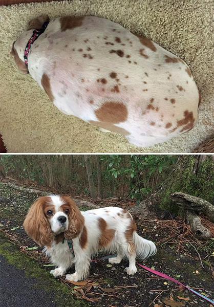 阿比之前總是暴飲暴食,而且也不鍛煉。久而久之,它變得越來越胖,每走一步都要停下來喘喘氣,因此只能坐在小推車里被人推著走。2016年5月,阿比主人的鄰居很擔(dān)心它的健康情況,于是聯(lián)系了當(dāng)?shù)氐膶櫸锞仍行?。該中心的工作人員與阿比的主人 溝通后,順利把它帶去了中心幫它減肥。