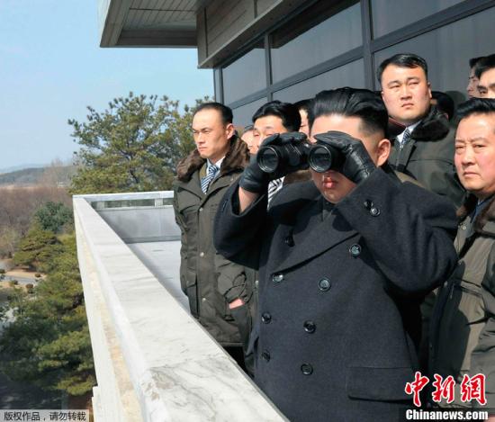 資料圖:由朝中社3月4日公布的照片顯示,朝鮮人民軍最高司令官、朝鮮黨和人民的最高領(lǐng)導(dǎo)者金正恩視察板門店。