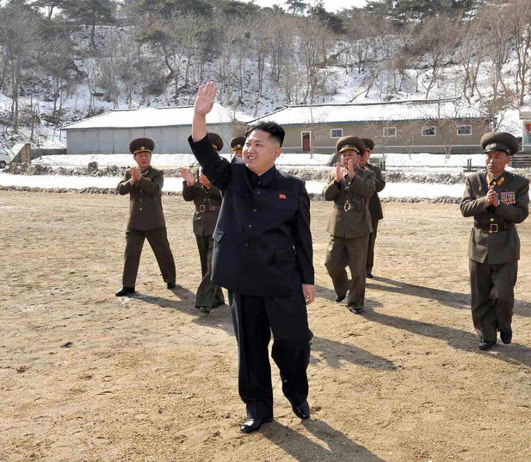 這張朝鮮中央通訊社2012年4月5日提供的照片顯示,朝鮮最高領(lǐng)導(dǎo)人金正恩近日視察了駐守東部海岸前方哨所的麗島防御部隊(duì)。