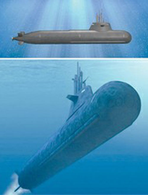 該型艇長63米,寬6.4米,吃水6米,水面航行速度超過l0節(jié),以電池模式潛航時速度超過20節(jié),以AIP模式潛航時航速5節(jié),航程1000海里,水面排水量1700噸,水下排水量1900噸,艇員編制17~26人。采用X型艉舵,四個舵面均有垂直舵和水平舵的雙重功能,且每個舵面都可以獨立控制,大大提升潛艇機(jī)動性能。