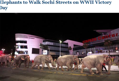 據(jù)俄新社報道,俄羅斯國家馬戲公司日前透露,為了慶祝衛(wèi)國戰(zhàn)爭勝利67周年,來自俄羅斯一著名馬戲團的象群將于5月6日在索契的大街上巡游。