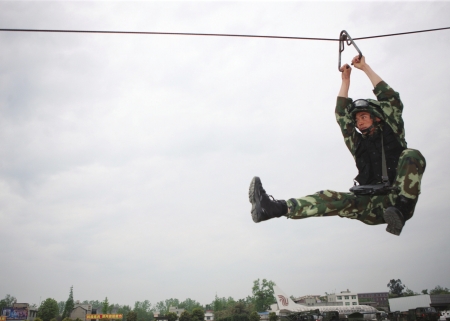 站在記者面前的王永法個(gè)頭中等、皮膚黝黑、體魄健壯。這位來自河南的80后老兵,乍一看和普通一兵并無不同。但他身上卻籠罩著一道道光環(huán):囊括了武警四川總隊(duì)近兩年所有軍事比武的冠軍,5次被評(píng)為“軍事訓(xùn)練標(biāo)兵”,榮立二等功1次,三等功4次,榮獲武警部隊(duì)“勇士勛章”,最近作為西南反劫機(jī)作戰(zhàn)隊(duì)的代表人物,被確定為第十五屆中國(guó)武警十大忠誠(chéng)衛(wèi)士候選人……在武警四川總隊(duì)一支隊(duì),他是人人皆知的“瘋子”。