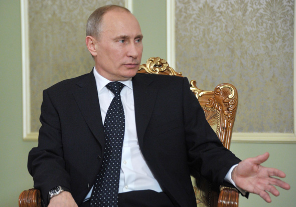 2012年5月31日,在白俄羅斯首都明斯克,到訪(fǎng)的俄羅斯總統(tǒng)普京與白俄羅斯總統(tǒng)盧卡申科(不在畫(huà)面中)會(huì)談。當(dāng)日,新任俄羅斯總統(tǒng)普京抵達(dá)白俄羅斯,開(kāi)始為期2天的正式訪(fǎng)問(wèn)。這是普京上任以來(lái)的首次出訪(fǎng)。圖片:新華社/法新