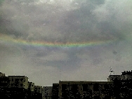 昨天中午12點20分,家住西開發(fā)區(qū)的王女士打來電話:我們這里沒有下雨,但是天空中出現(xiàn)了彩虹,我覺得好奇怪呢,自己就拍了兩張照片。