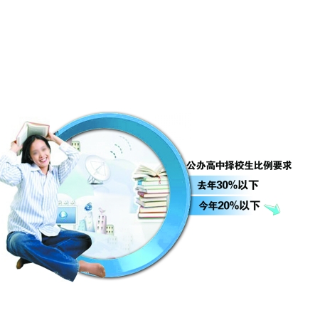 今年,我省公辦高中擇校生比例將控制在20%以下,去年這個(gè)比例為30%,這意味著將有更多考生不需掏擇校費(fèi)就能上理想高中。