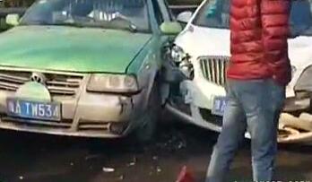 鄭州十余車相撞 灑水惹的禍?