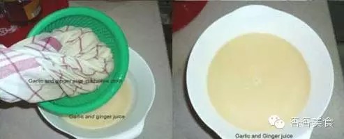 1.蒜頭去皮,姜去皮切小片,放入榨汁機(jī)榨汁,或者放入攪拌器打成漿,用網(wǎng)布隔渣,絞出汁。