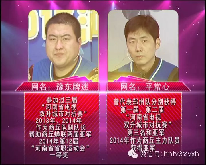 今天將要進行的是2015河南省電視雙升精英賽下半?yún)^(qū)第2輪敗者組的第2場比賽,由第一輪失利的商丘精英豫東牌迷和平常心對決濟源精英布局和傲云天。