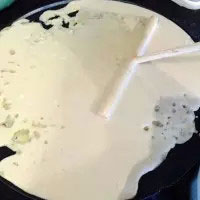 5. 倒入面糊,用小棒慢慢攤開。