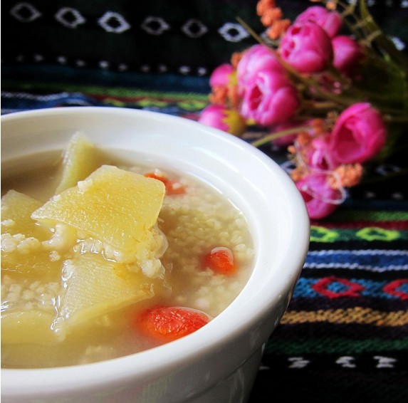 食材:蘋果1個(gè)、小米100g、水1000ml