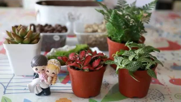 這些花瓶里的童話世界精致美麗,讓你仿佛置身于其中。制作微景觀,首先要鋪設(shè)隔水基底,鋪上種植土,再選取一個(gè)創(chuàng)意瓶作為容器,陶粒為底隔水透氣,撒上水苔緩沖,再鋪上厚厚的種植土,噴水打濕后種植層就完成了。