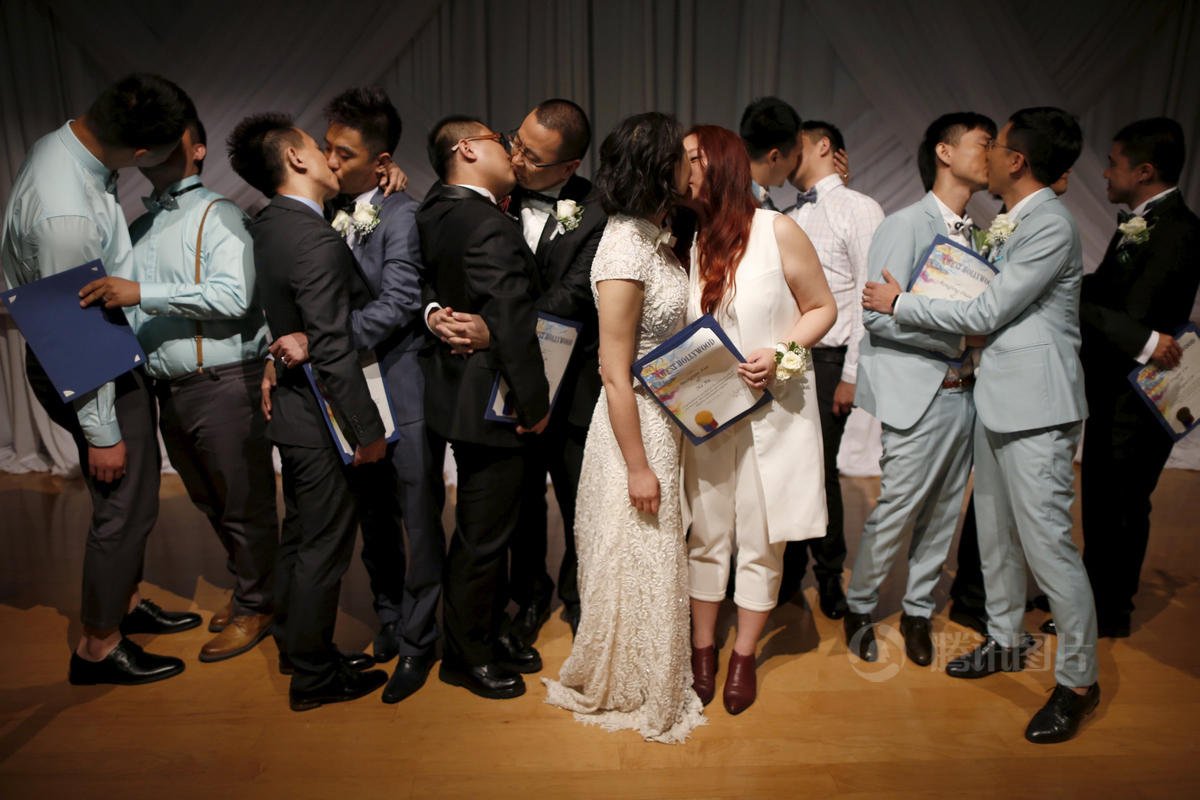 6月9日,美國加州洛杉磯,七對來自中國的同性戀情侶舉行集體婚禮,婚禮儀式由中國大陸一家互聯(lián)網(wǎng)巨頭資助。加州是美國同性戀婚姻合法的30個州之一,婚禮費用均由贊助企業(yè)承擔(dān)。